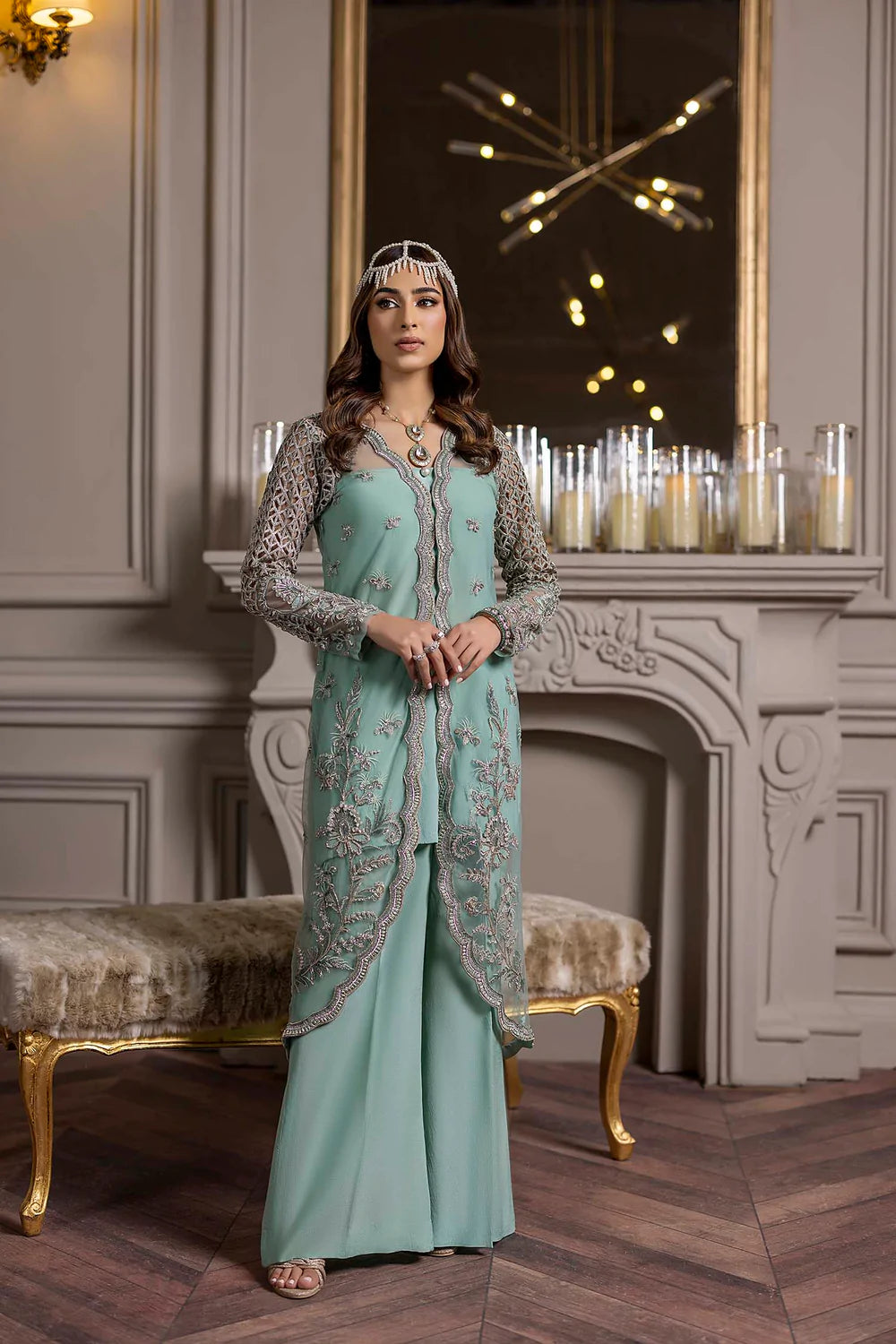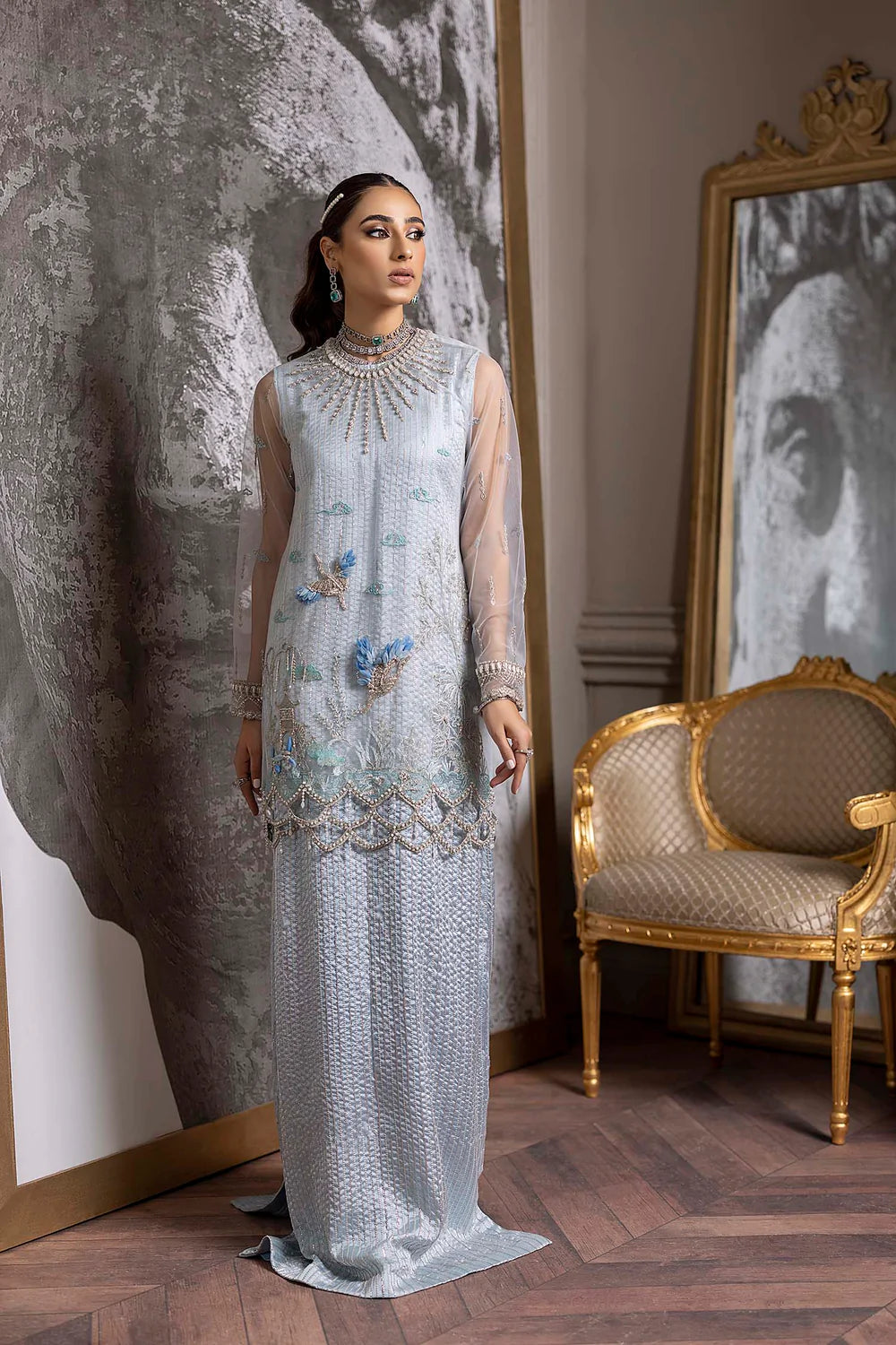 View in International Store for orders outside of Pakistan Includes: Four Piece Shirt 34’’ inches Sharara...