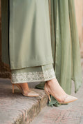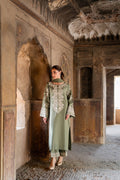 The Abroo set is a graceful 2-piece ensemble in soothing sage green, delicately adorned with intricate hand-aari embroidery for a timeless charm. The set includes a straight-cut kurta and embroidered culottes, both crafted in soft karandi fabric for all-day comfort.