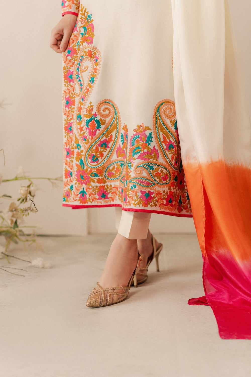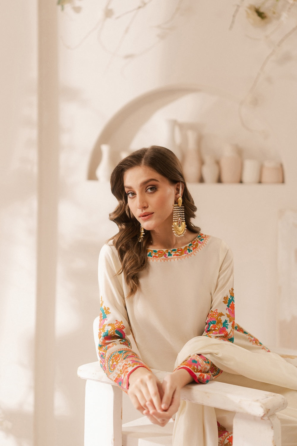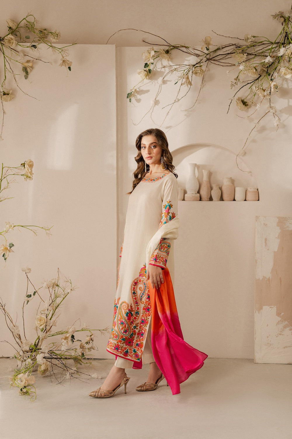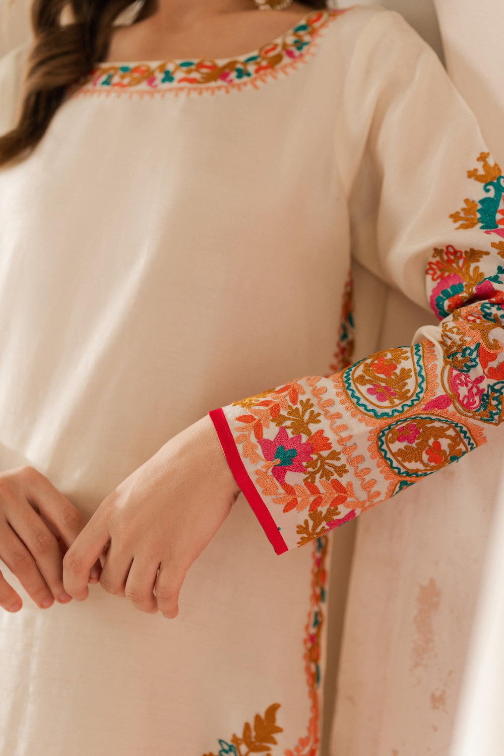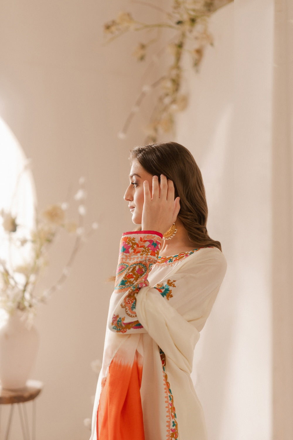 For the woman who was born for the spotlight, this piece is a flamboyant celebration in premium rawsilk. This glamorous ensemble with a structured fit offers the perfect silhouette and elevates its grandeur in tonal embroidery and elegant details. It is a stunning work of art with complete hand-worked detailing. All in all a head-turner in any party!
