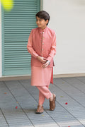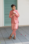 Presenting a refined ensemble featuring a waistcoat crafted from embroidered raw silk, complemented by a wrinkle-free polycotton shirt and matching pants. This outfit elegantly combines sophistication and comfort, perfect for formal occasions. The intricate embroidery on the waistcoat adds a luxurious detail, while the polycotton fabric ensures a neat and polished appearance.