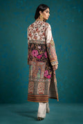 Simple straight shirt silhouette beautiful print on silk fabric Mughal inspired ornaments delicate handcrafted zardozi work to enhance the print antique gold tila thread work Mughal jewelry inspired motifs created with dapka, naqshi, sequins and pearls appliqued on the sleeves. Pants can be added and can be paired with striking pink duppatta finished with antique gold tila thread and sequins lace.