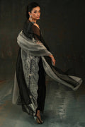 A statement in celestial grandeur, this silhouette pairs luminous silver tissue with deep black velvet, adorned in exquisite hand-worked tilla, dabka, cutwork and resham embroidery. Finished with an embroidered organza, two toned dupatta, the look blends old-world craftsmanship with a modern, sculptural form. Comes with pants.