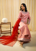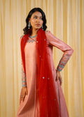 Description: Where elegance meets opulence! Draped in hues of soft pink and deep crimson this exquisite ensemble is adorned with intricate embellishments that sparkle like a starlit sky. A statement of grace, beauty and timeless charm!