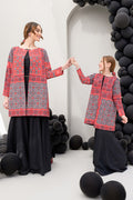 Introducing the Crimson Heritage 3-piece set, a stunning ensemble that celebrates timeless tradition. This outfit includes a beautifully tailored jacket, an inner top, and flared pants, all in a rich maroon hue inspired by the elegance of Ajrak prints. Made from soft crepe fabric, it drapes beautifully for all-day comfort. Perfect for festive occasions or formal gatherings, the Crimson Heritage set is a modern tribute to cultural artistry, ensuring you look stylish and graceful.