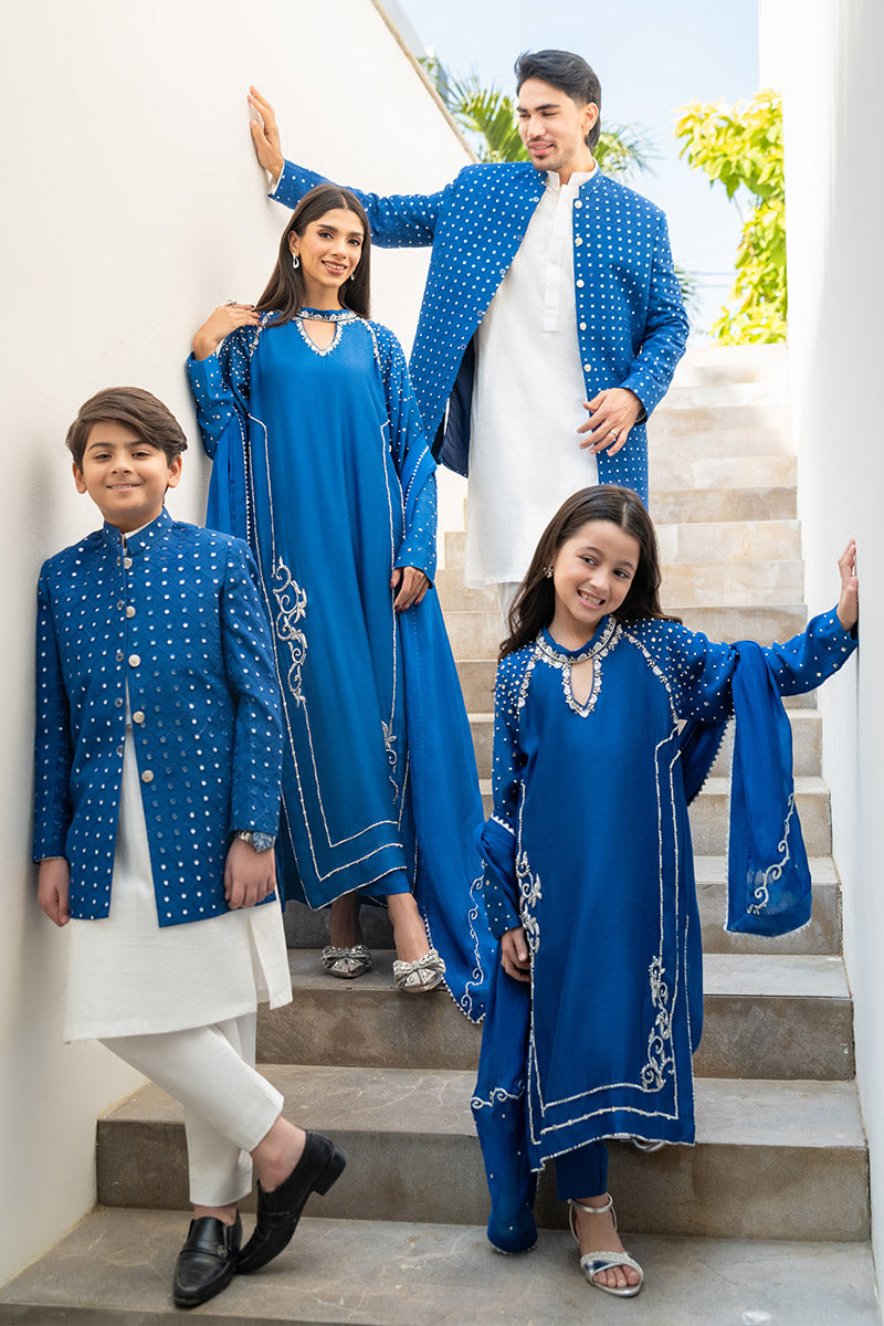 Introducing a sophisticated ensemble featuring a prince coat crafted from embroidered raw silk, paired with a self viscose cotton shirt and matching pants. This outfit beautifully combines elegance with comfort, making it perfect for formal occasions. The luxurious embroidery on the coat adds a distinguished touch, while the viscose cotton fabric ensures a soft and breathable wear.
