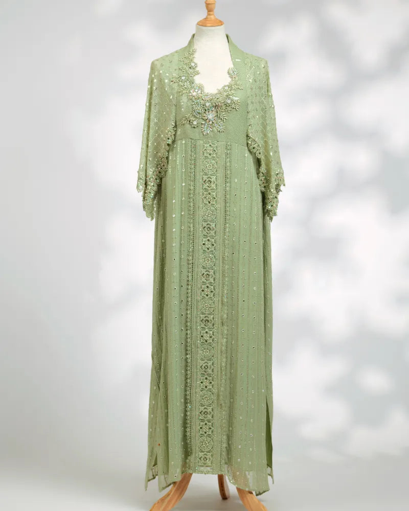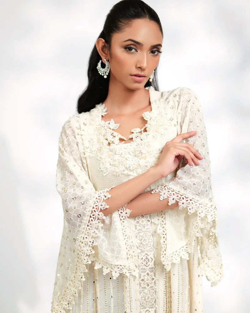 Detailings: Embellished Chicken Kari & Cutwork Embroidery Kaftan