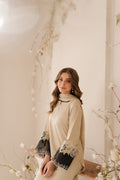 For the woman who knows her mind and is her own guiding light, a majestic kurta set in rich hues of beige and black. Featuring floral embroidered motifs, elevated with organza insertions in the sleeves and daaman, the Ghazal set is handcrafted for pure elegance. Each karigar spends a full-day in creating this intricate work of art and turn it into a masterpiece.