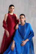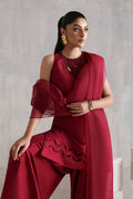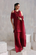 Elevate your style with this maroon short shirt crafted from pure raw silk. Paired with coordinating raw silk pants and a pure organza dupatta, it exudes a refined, elegant charm, perfect for a sophisticated look.