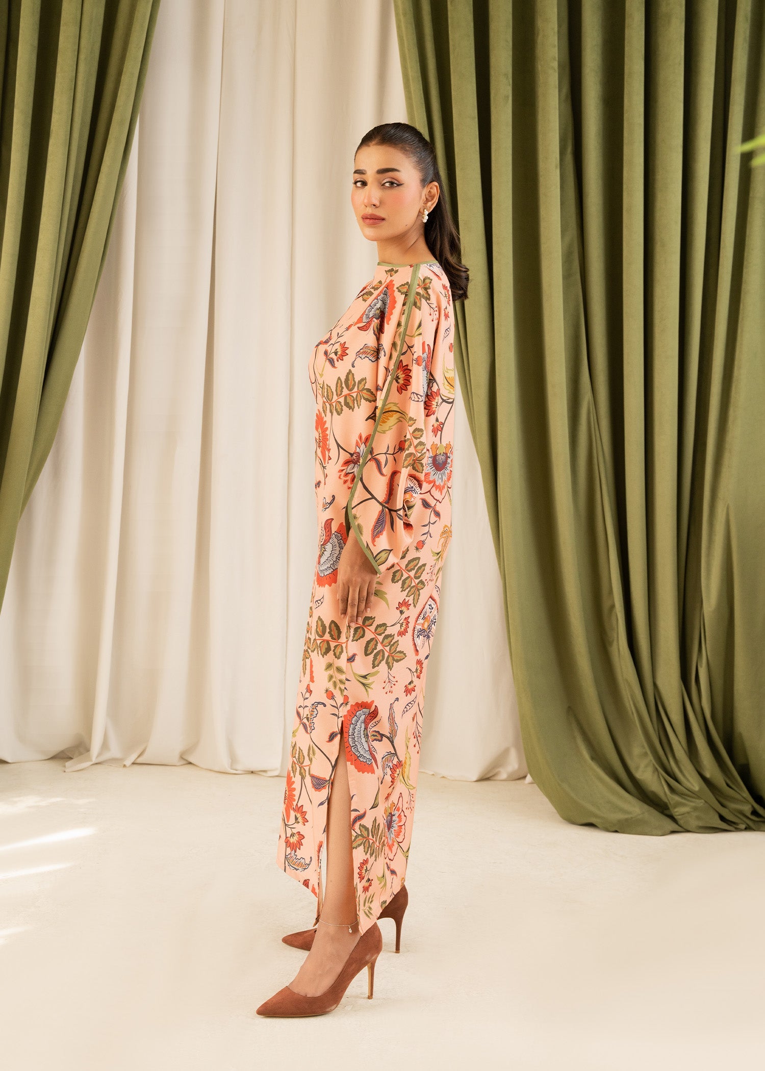 Helen - This top, made in soft lawn silk fabric, in floral print, features boat neckline, batwing sleeves and side slits. The multicoloured print brings out a unique look.