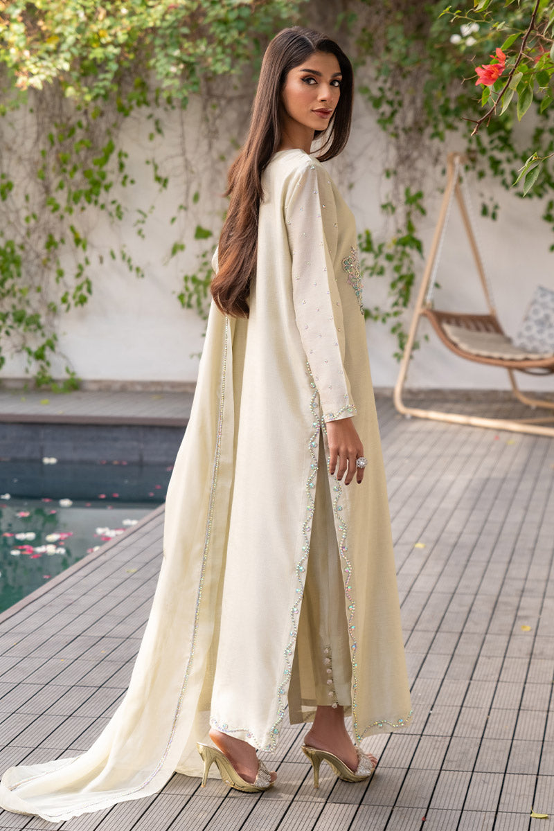 Drenched in the brilliance of lime yellow, Aurora is a celebration of heritage craftsmanship with a modern touch. The Zari Khadi shirt shimmers with a rich texture, perfectly complemented by pure sheesha silk straight pants and a medium silk dupatta adorned with delicate organza borders and sparkling stone details. With a shirt length of 52 inches and standard pant length, this silhouette is effortlessly elegant. Whether you’re attending an intimate gathering or a grand festivity, Aurora promises to make a statement with its luminous charm and exquisite craftsmanship.