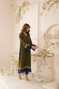 For the woman who finds herself by losing herself to her own music and own rhythms, an ode in lush green. This majestic karandi kurta set is inspired by deep forests, showcasing elegant florals in detailed threadwork combined with fringes in a contrasting shade of deep blue.