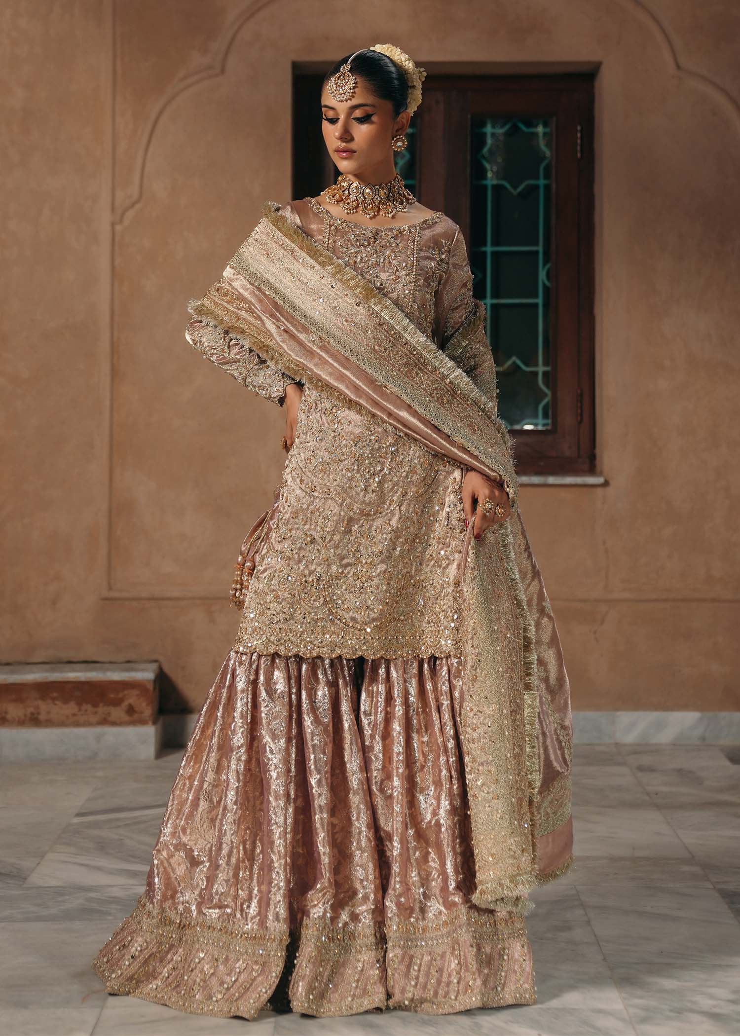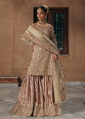 Soft, graceful, and effortlessly elegant—this Baby Pink Tissue Gharara Set is a timeless addition to your festive wardrobe. The shirt features intricate heavy embroidery, adding delicate texture and charm to the feminine hue. It’s paired with a beautifully flared gharara made from badla fabric, offering just the right touch of shimmer and movement. The look is completed with a matching tissue dupatta, light as air and subtly lustrous. Perfect for daytime festivities, dholkis, or intimate wedding events, this three-piece ensemble is all about understated luxury in a dreamy pastel palette.