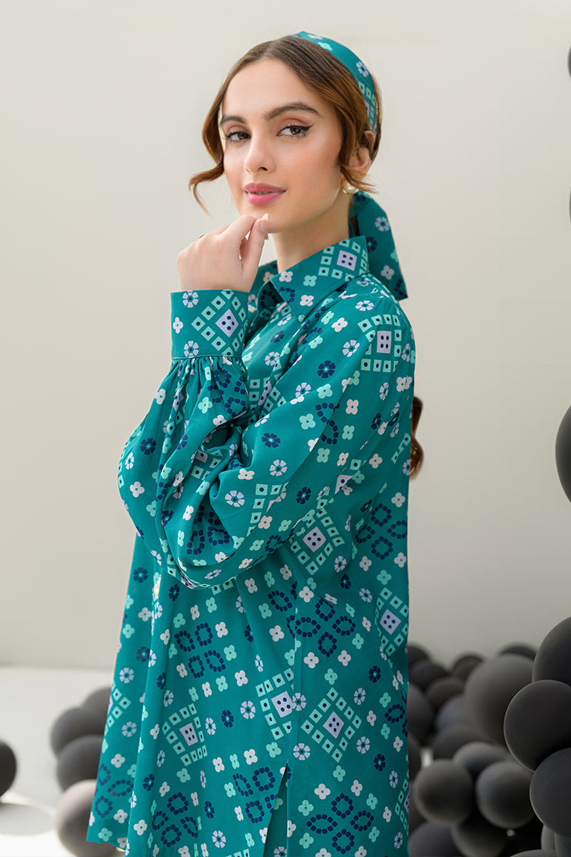 Introducing the Pine Whisper co-ord set, designed to channel nature’s tranquility. This stunning ensemble features a short buttoned shirt in a rich dark green hue, elevated with delicate pearl details at the front, adding a subtle touch of elegance. Paired with culotte pants, the set offers a modern, relaxed silhouette that is both chic and comfortable. The shirt measures 29 inches in length, while the culotte pants are 37 inches long, ensuring a flattering fit. Crafted from soft crepe fabric, the Pine Whisper set is perfect for casual outings, office wear, or weekend gatherings, providing effortless style with an air of sophistication.