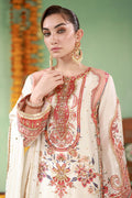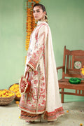 Raw silk long shirt and izaar in ivory and rust with a crew neckline featuring rust appliqué work, embellished with sequins, gota, and cut dana. Paired with an ivory medium silk dupatta with printed borders.