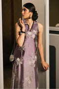 Solitaire, a knee-length halter dress designed to captivate. Featuring a stunning ombré effect, a sophisticated band collar, and sleek side slits, this ensemble effortlessly merges modernity with timeless charm. Exquisitely hand-embroidered florals grace the front, complemented by meticulously embellished borders on the collar, halter neckline, and hemline, adding layers of intricate detailing. The look is completed with a straight-fit trouser for a streamlined silhouette and a chiffon dupatta, adorned with a scalloped embroidered border for an air of refinement. Solitaire is the epitome of understated luxury, perfect for those who embrace elegance with a touch of boldness.