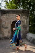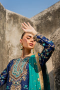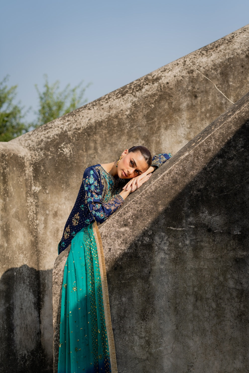 Zohra, the collection’s showstopper, boasts an elegant design highlighted by vibrant multicolored details. Delicate dabka and sitara accents add depth and dimension, while the shirt’s striking back motif becomes its defining feature. Paired with a two‑toned chiffon mukesh dupatta, the ensemble exudes a luxurious finish, blending sophistication and glamour effortlessly.